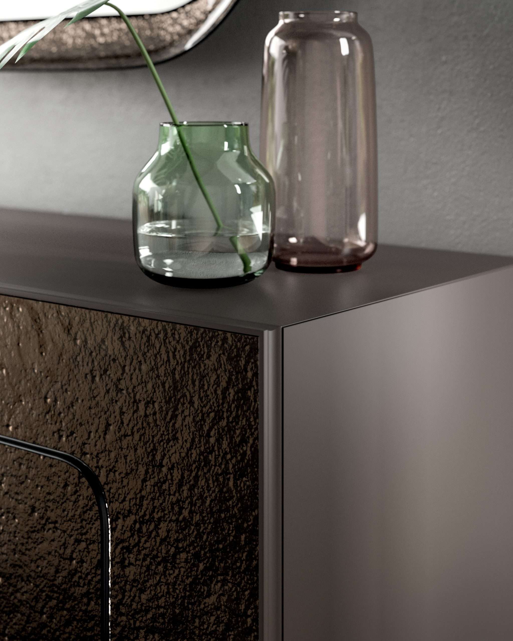 GIULIA užkariauja akį savo poliruoto sidabro arba bronzos tekstūra, kuri įveikia laiko barjerą ir nuostabiai sugrįžta į ateitį. Drąsios, kampuotos spintelės prabanga, spindinti asmenybę. Idealiai tinka tiems, kurie mėgsta stebinti.