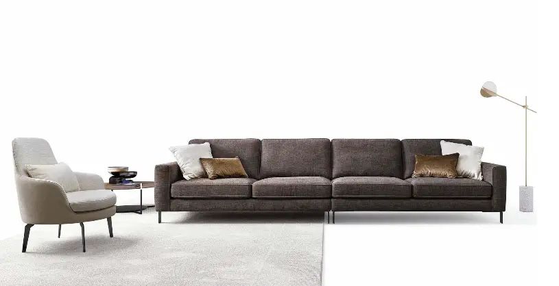 RUSSEL sofa pabrėžia Jūsų svetainės interjerą. Plonos, elegantiškos kojelės sukuria sofai lengvumo pojūtį. Ši sofa turi platų audinių ir modulių pasirinkimą.
