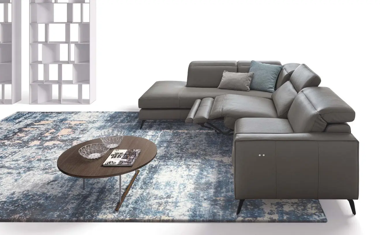 Moderni sofa su reglaineriu CHRISTOPHER, reguliuojamomis galvos atramomis ir paryškintu apvadu.