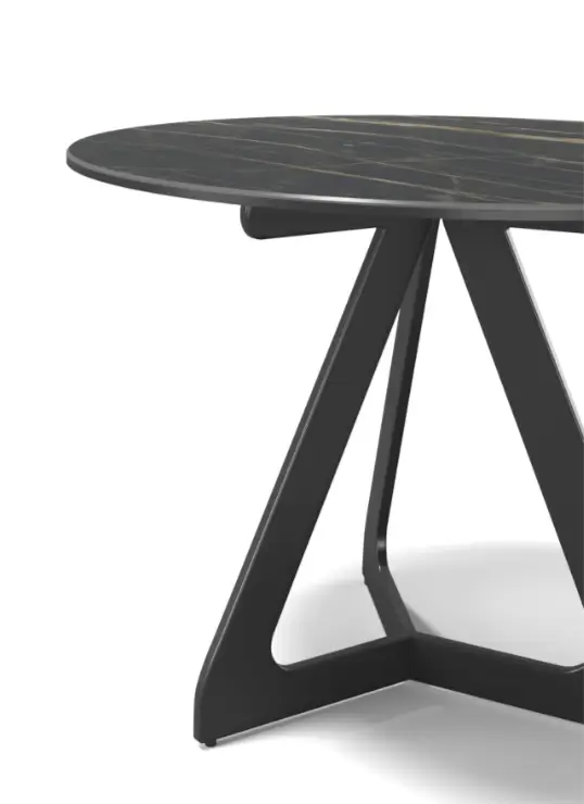 TSURUGI – modernus, apvalus su keramika ant stiklo stalviršiu ir tvirtomis metalinėmis kojelėmis kavos staliukas. Interjere puikiai atrodys ir vienas, ir sukomplektuotas poroje, sukuriant eleganciją ir funkcionalumą.
